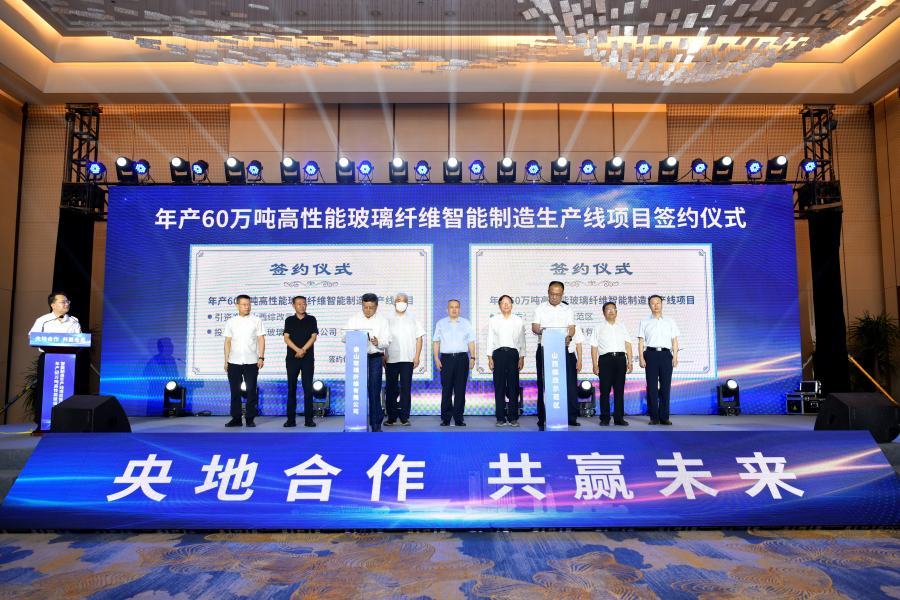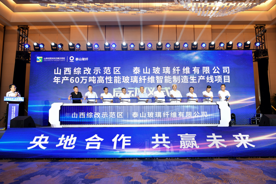 在全省上下以踔厉奋发之姿喜迎党的二十大胜利召开之际,8月8日,山西综改示范区引进泰山玻璃纤维有限公司“年产60万吨高性能玻璃纤维智能制造生产线项目”签约与启动仪式隆重举行,标志着泰山玻纤综改区基地项目正式启动建设。这是综改区践行习近平总书记“在转型发展上率先蹚出一条新路来”殷切嘱托,深入贯彻落实省委、省政府部署要求,当好“排头兵”、强化“南引擎”实施的重大产业项目,对我省“高质量推动合成生物全产业链集群化发展”和“打造国内领先的高性能纤维及复合材料产业高地”具有重要意义。省政府副秘书长、综改区党工委书记、管委会主任刘锋出席。综改区党工委委员、管委会副主任崔俊林,中材科技股份有限公司副董事长、泰山玻纤董事长唐志尧分别代表双方签约。