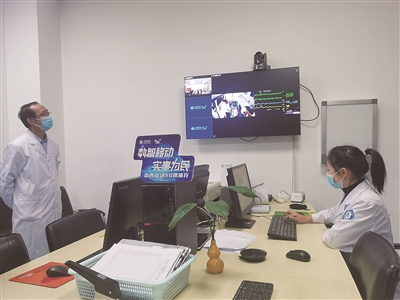 通过5G技术的加持,高平市人民医院医生在诊室就可实时了解到救护车内患者的生命体征数据,实现院前院内无缝联动。本报记者 王佳丽 摄