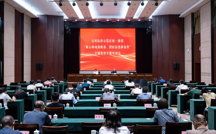 为深入学习习近平新时代中国特色社会主义思想,认真贯彻落实中央、省、市有关统一战线会议精神,以进一步发挥新时代统一战线法宝作用为目标,强化思想引领,坚持守正创新,聚力服务大局,9月4日,山西综改示范区统一战线“凝心铸魂强根基、团结奋进新征程”主题教育专题培训会成功举办。区内民主党派、无党派、企业家及新的社会阶层代表人士共60人参加。